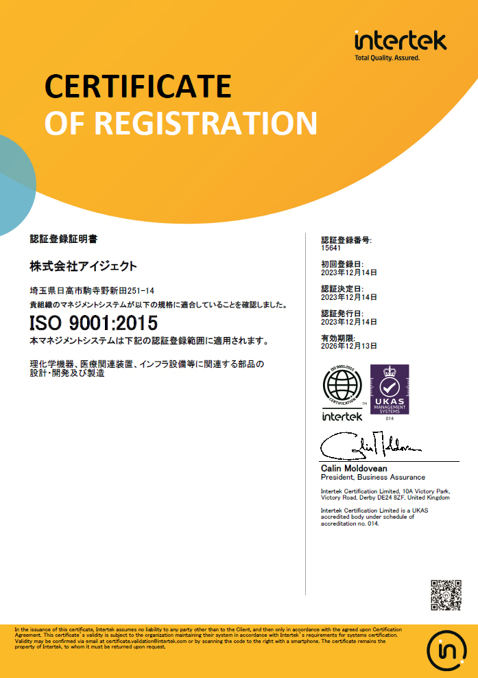 さらに当社では、高品質を客観的に証明するためにISO 9001:2015を取得しております。